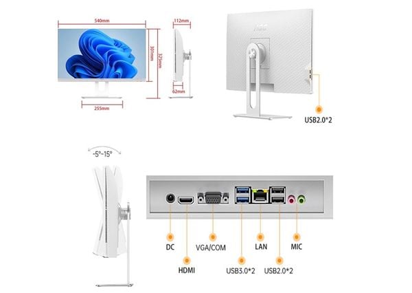 Mặt trước là một màn hình viền mỏng hiện đại, giúp mở rộng góc nhìn và nâng tầm thẩm mỹ tổng thể. Mặt sau bo tròn nhẹ nhàng, không lộ dây dợ, tạo nên cảm giác liền mạch và dễ dàng bố trí ở bất kỳ không gian văn phòng hay góc học tập nào.