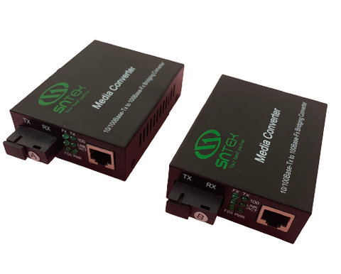 Media Converter SNTEK (hay Bộ chuyển đổi quang sang điện - O/E), là thiết bị sử dụng cho chuyển đổi truyền dẫn quang qua Ethernet tốc độ cao, sử dụng phương thức ghép kênh theo bước sóng (WDM) và cho phép tín hiệu truyền theo 2 chiều (BIDI). Với cấu hình gồm 1, 2 sợi quang, tốc độ lên tới 10/100/1000Mbps (1Gbps) mang lại khoảng cách truyền ổn định trên cáp quang sợi đơn mốt (single-mode), phù hợp cho mọi nhu cầu sử dụng.